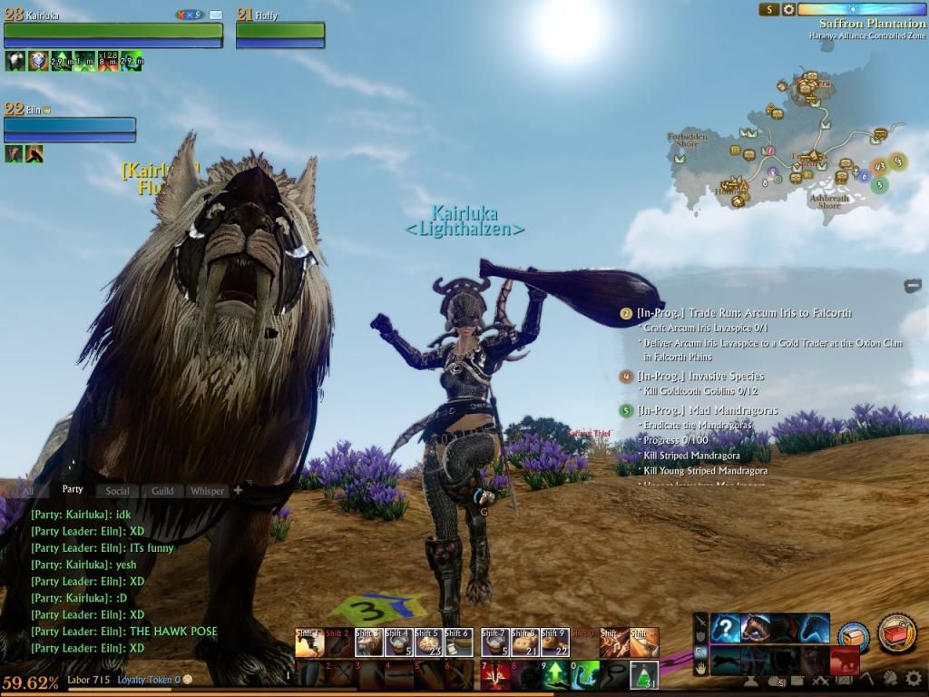 Shell and I came from the same place, and despite us not being very familiar with each other, he suggested that we go explore together. Shell was an archer and very efficient in completing his tasks and quests, so we were making good progress at the start of our journey... until I missed a task and couldn't complete a quest to earn my snow lion mount.